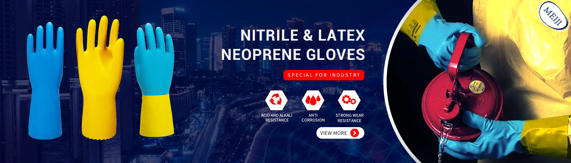 Qingdao Meiji Labor product Co., LTD., founded in 2010, after years of rapid development, the company has developed into a set research and development, trade, production into an organic whole, the specialty is engaged in the export business of work gloves in China,like cotton gloves,latex gloves,nitrile gloves,leather gloves..etc.