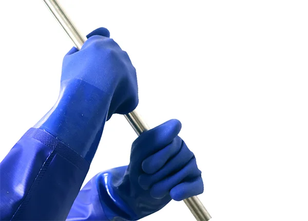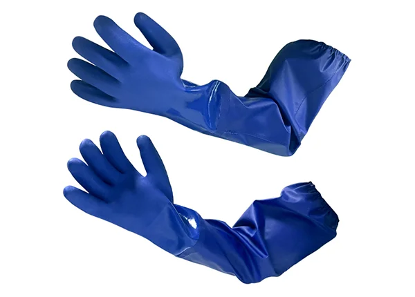 65cm long blue PVC sandy finished cotton lining with oversleeves