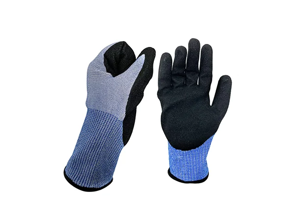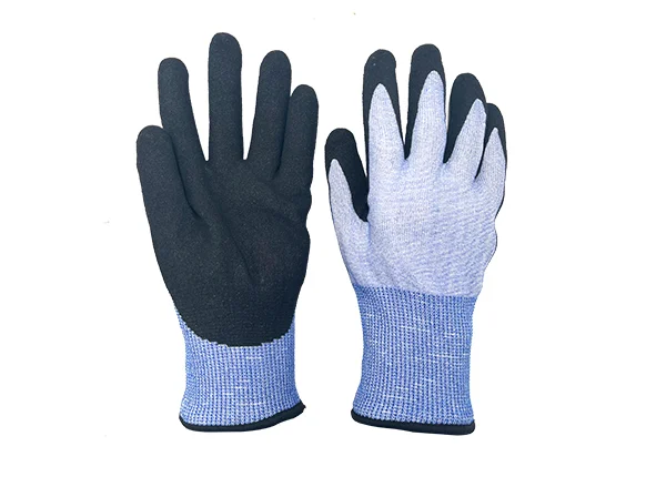 Anti cut Level 5 18gauge nylon/spandex sandy nitrile coated gloves