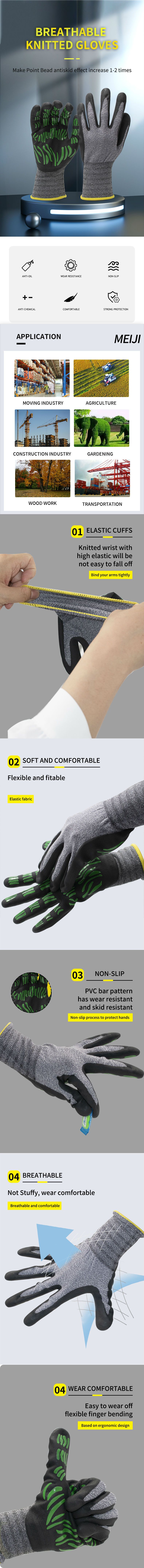 15 gauge Foam Nitrile palm coating gloves with PVC bar pattern