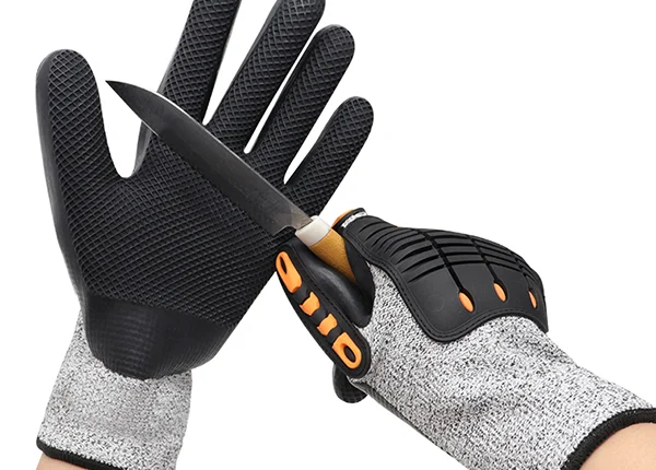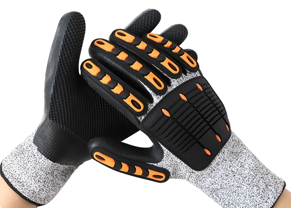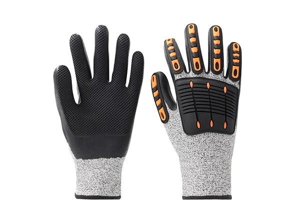 13G TPR with thick Latex embossed pattern on impact-resistant and cut-resistant work gloves