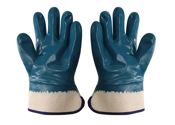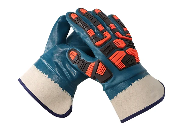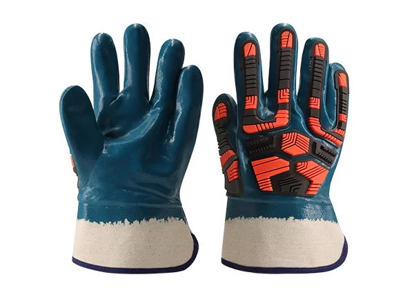 Safety cuffs smooth nitrile coated impact resistant heavy industrial gloves