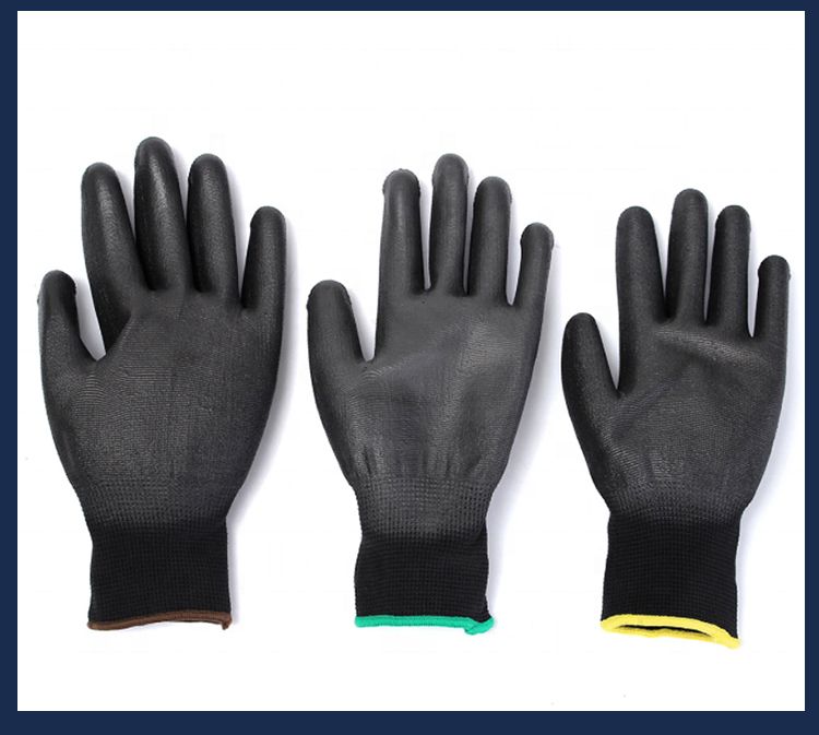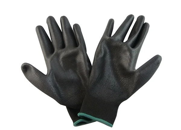 13G Knitted Black Nylon PU Coated Gloves Work Safety Gloves