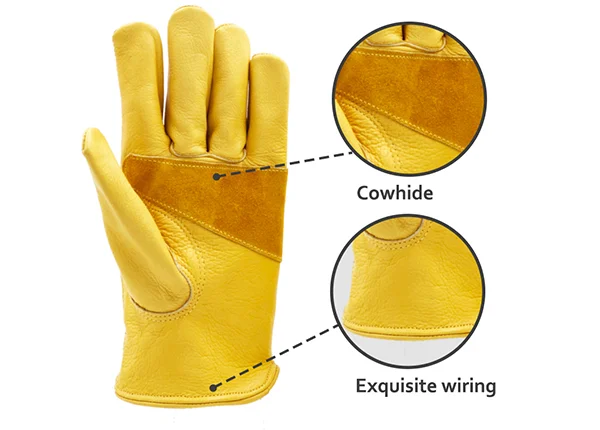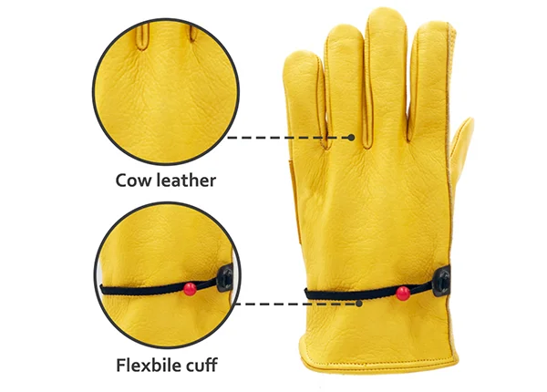 yellow cowbelt buckle leather high temperature resistant welding and driver gloves